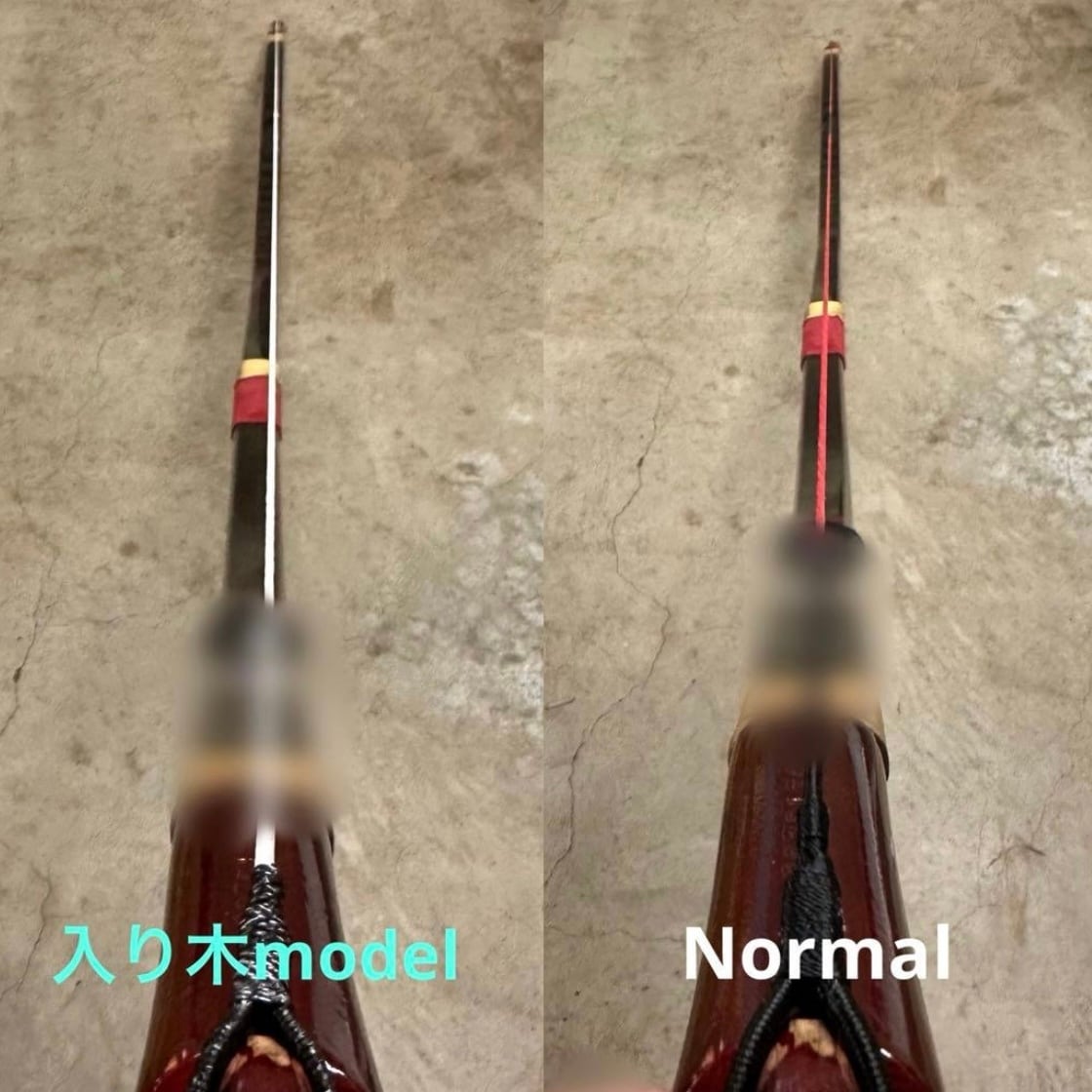 入り木の強い弓に使用する際は日の輪側の太い方がゆはずの右側になるように弦をかけてください。弓が返り破損する恐れがあります。